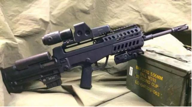 87式突击步枪5.8mm自动步枪是我国自行研制的第一代小口径步枪。